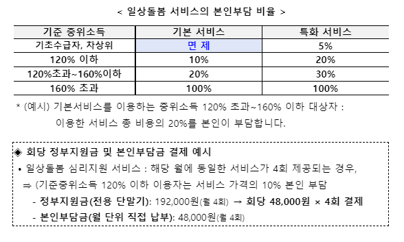 일상 돌봄 서비스 본인부담금