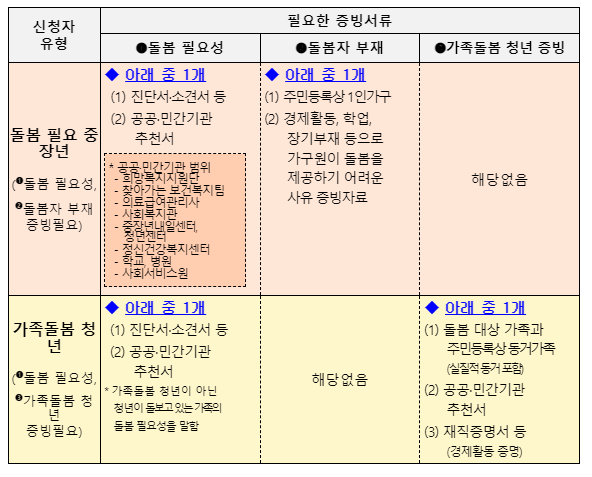 ②진단서, 소견서, 장기요양인정서 등의 서류를 갖춘 동거하는 가족이 질병, 부상으로 돌봄이 필요한 분