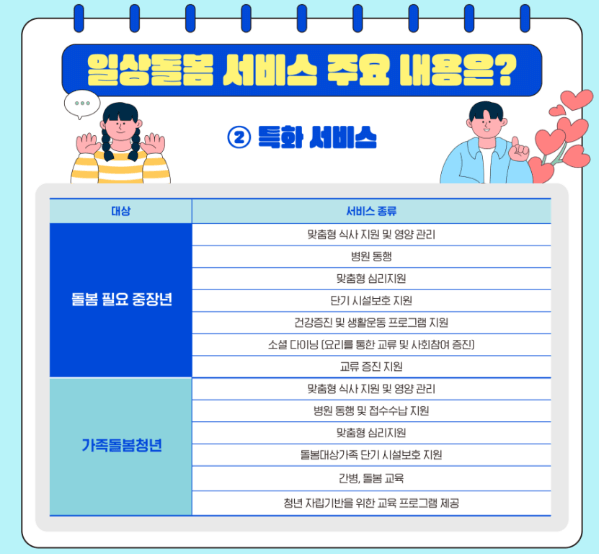 일상 돌봄 서비스는 중장년과 가족 돌봄이 필요한 청년을 대상으로 하여